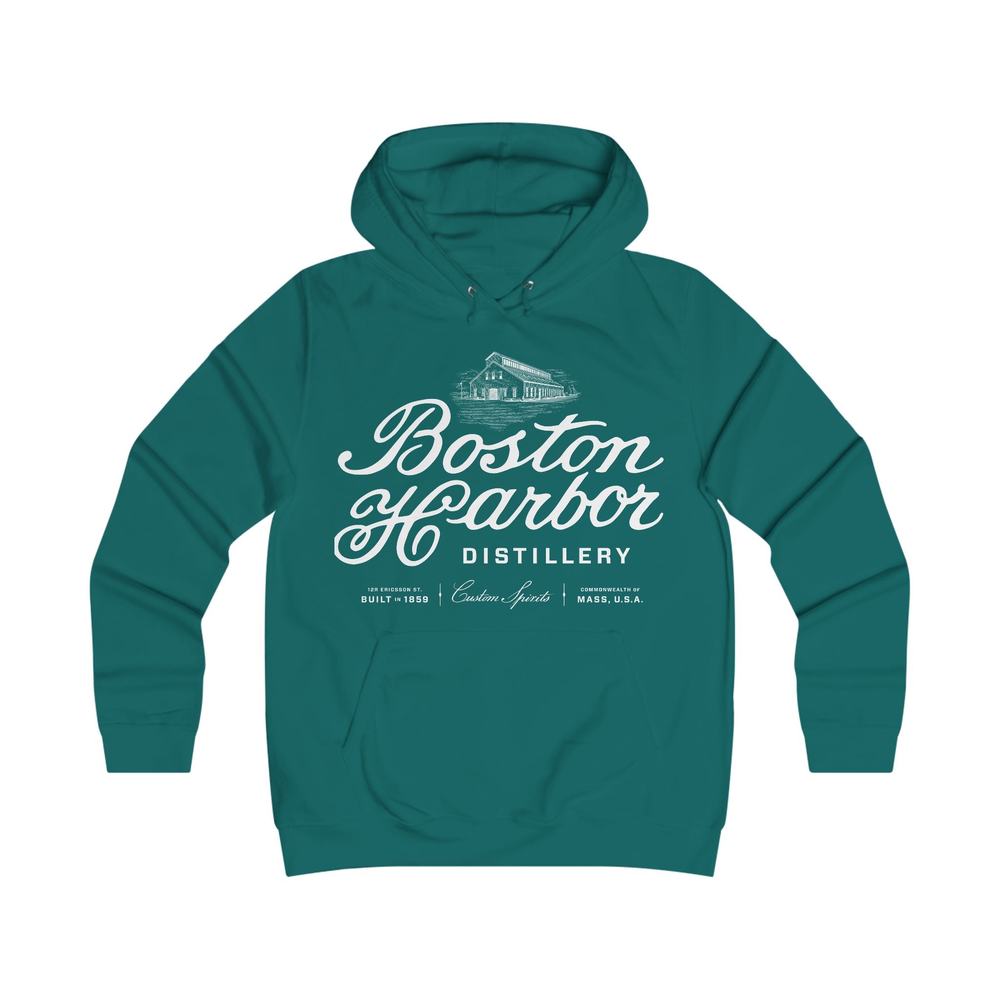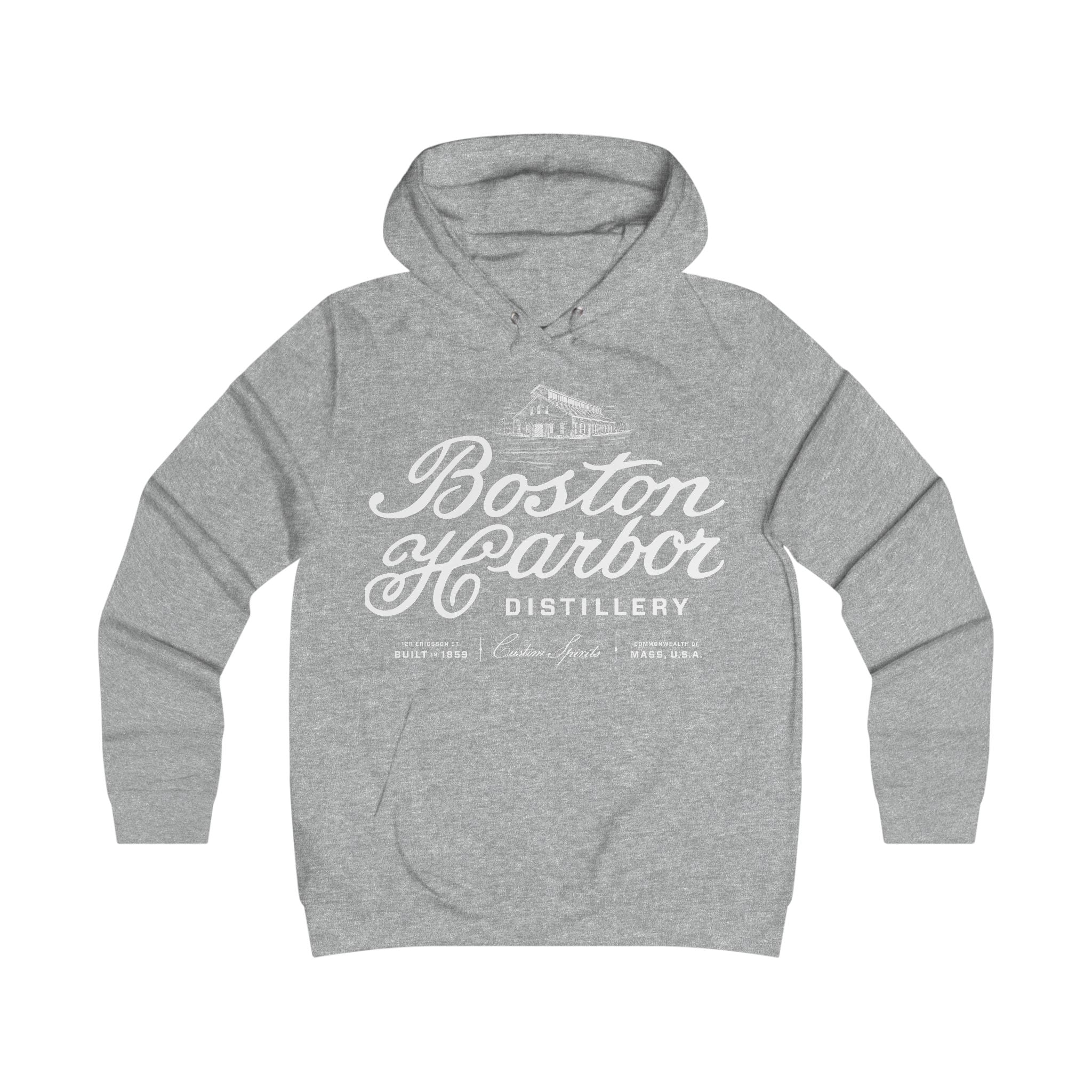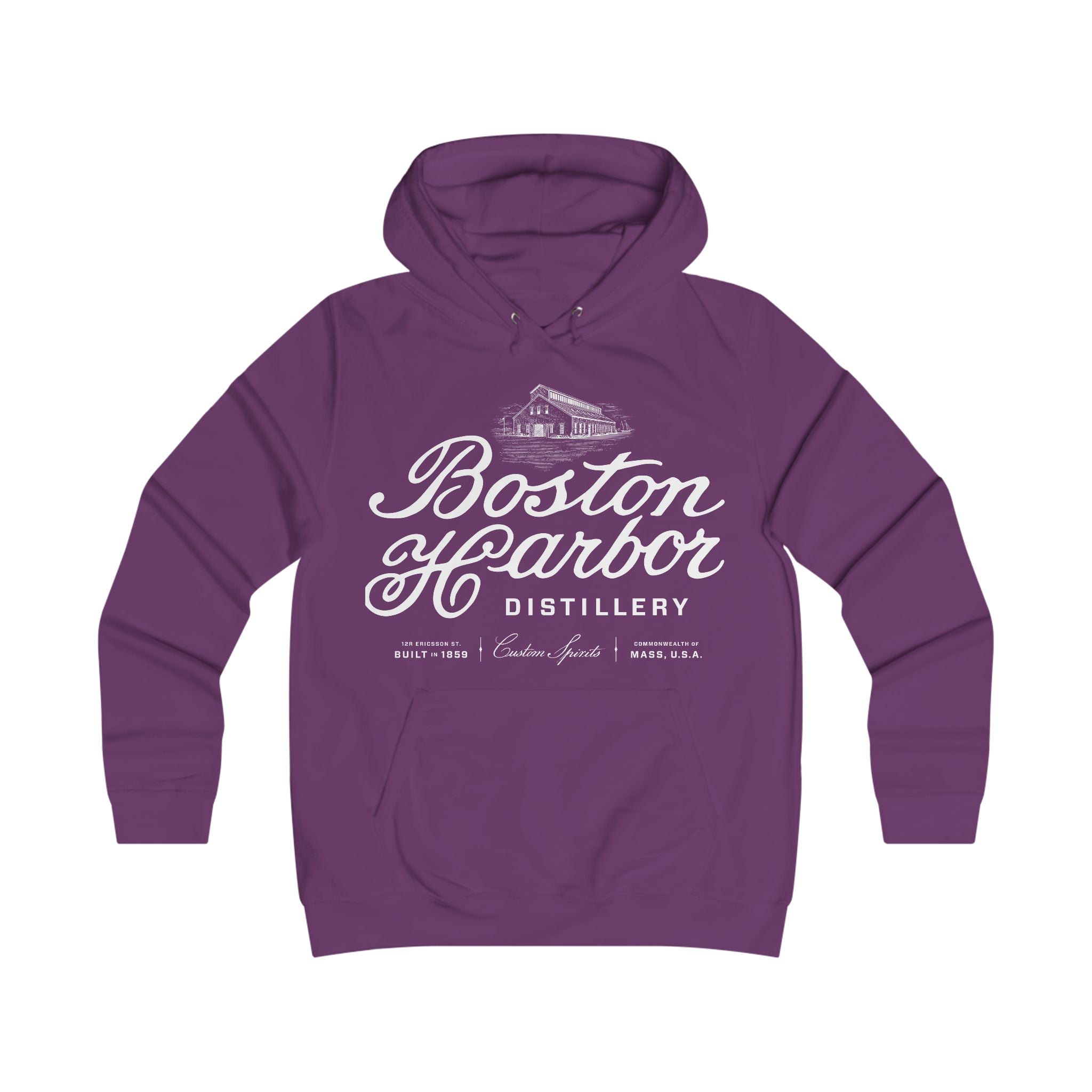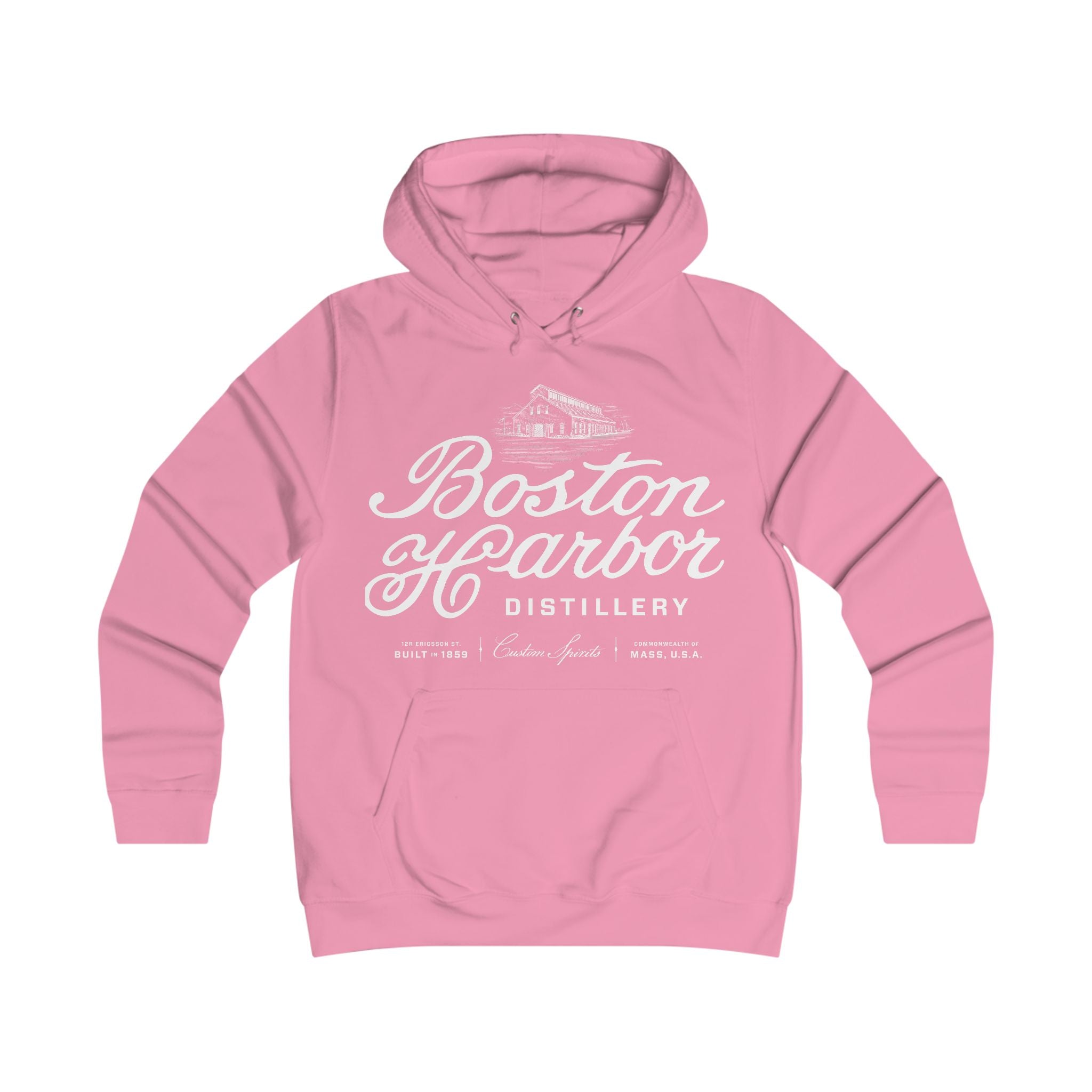 Ladies version of the popular JH001 hoodie. This College Hoodie has a feminine fit and features a double fabric hood, Kangaroo pouch pocket with a small hidden opening for headphone cord feed, ribbed cuffs and hem, self-colored drawstring cords and twin needle stitch detailing.
